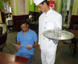 The coffee house had two kind of separate chambers for woman and families. In India, the society very often sees to that women can sort of withdraw a bit. Like Mumbai trains have women’s compartments. But the few women who came in, preffered the main area. Strange then, that the toilet was for both sexes. The first thing I saw when I opened the door were the pissoirs, but no men… Well I didn’t venture futher though.