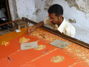 But then we escaped into the Mangaldas cloth market, a world of colours. Again we got shelter from the sun… The market sells all kind of  fabrics – preferably wholesale. Having a stall here is priceless. As I was in the hands of a guide, AND a man…., there wasn’t really time to stop and admire and spend – something I hadn’t really expected. I just wanted to get an overview, and go back on my own some time because we had a tight schedule.