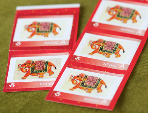 In Norway, it’s possible to create personal stamps, and even personal VISA cards. A chance not to be missed…. And then you can use the stamps together with some nice, elephant writing paper….