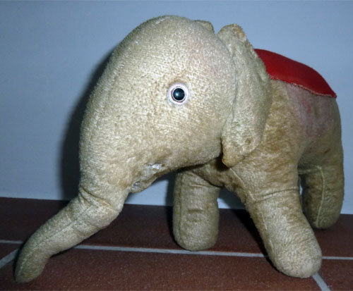 I grew up with an elephant. I always thought it was mine, until my elder sister claimed her right. I must believe her, there are after all reliable witnesses. So I grew up with an elephant in the household, a soft toy named Gus Gus, no doubt named by my father who was a maker of names. Gus Gus had a red cloth on top, like a horse cloth, but I shouldn’t say had because he is still very much alive – although he looks like he has been through a lot and the cloth seems to have been shrinking over the years.