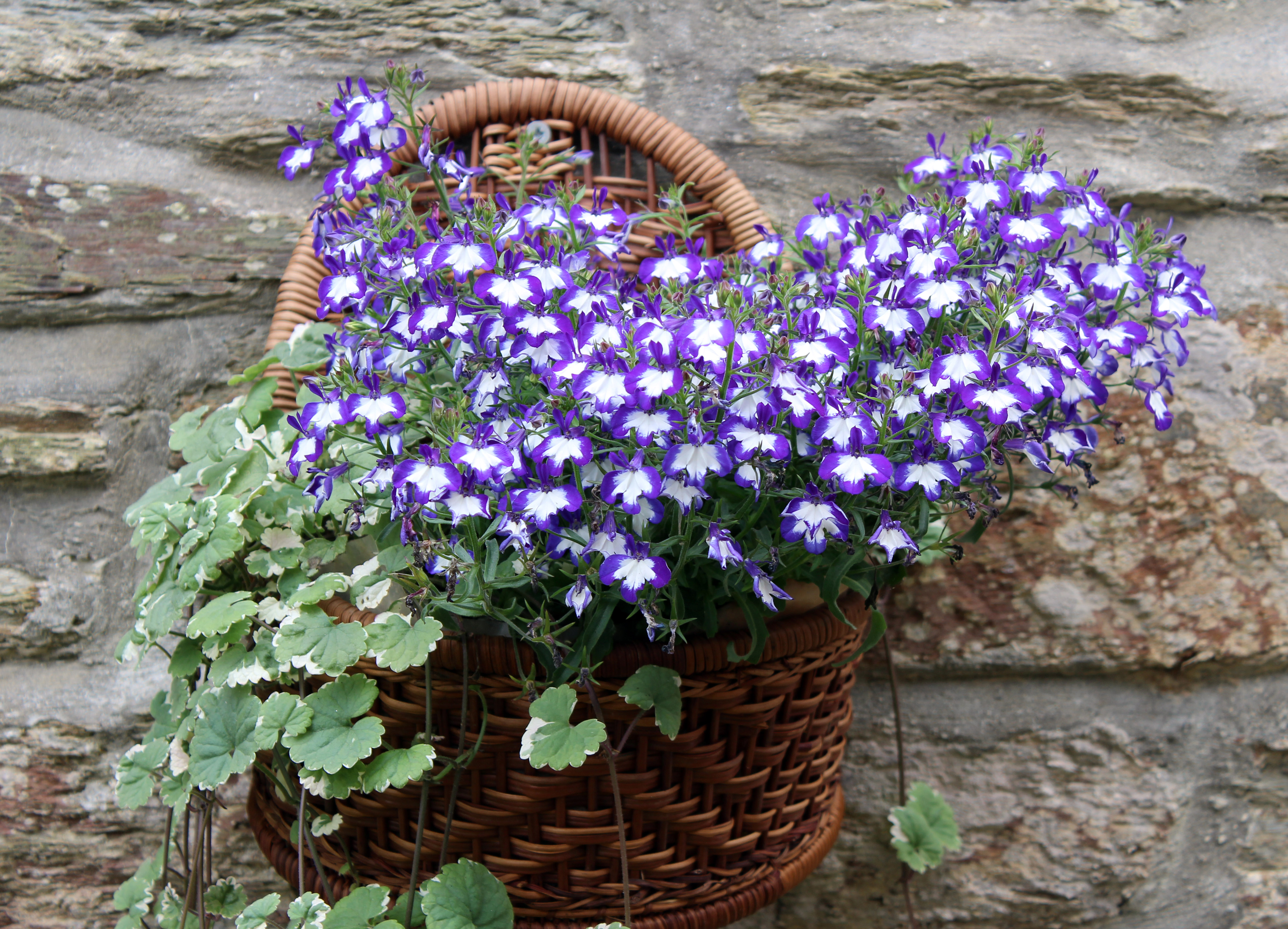 Lobelia was the first annual I took a liking to. For years and years we had one variety at our garden centers; the dark blue. A few years ago came the pink one, these days we have many more blues and more pinks…. But the one below was new to me, I saw it in Polruan outside a private house. So simple – so beautiful!