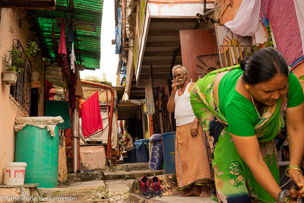 “Asalpha isn’t really a slum,” Viren claims. And poverty is not what springs to mind as we’re nearing the summit slightly out of breath in the humid environment. But India’s general wear and tear is visible everywhere.